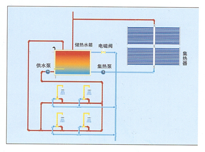 - 本系統(tǒng)中集熱器集中放置,設置滿足用戶需求容量的大型儲熱水箱,控制系統(tǒng)、循環(huán)裝置及其他輔助設...